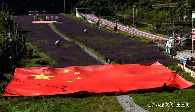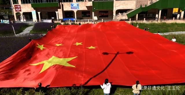 当天下午 3 点,景区里发生了一件让人热血沸腾的大事。一群可爱又热情的游客自发组织起来,足足二十多个人,齐心协力地托起一面超级大的国旗。这面国旗有多大呢?整整 600 平米!想象一下,这么巨大的一面国旗,就像一片红色的海洋。他们把国旗从高空缓缓放下,那场面,简直绝了!