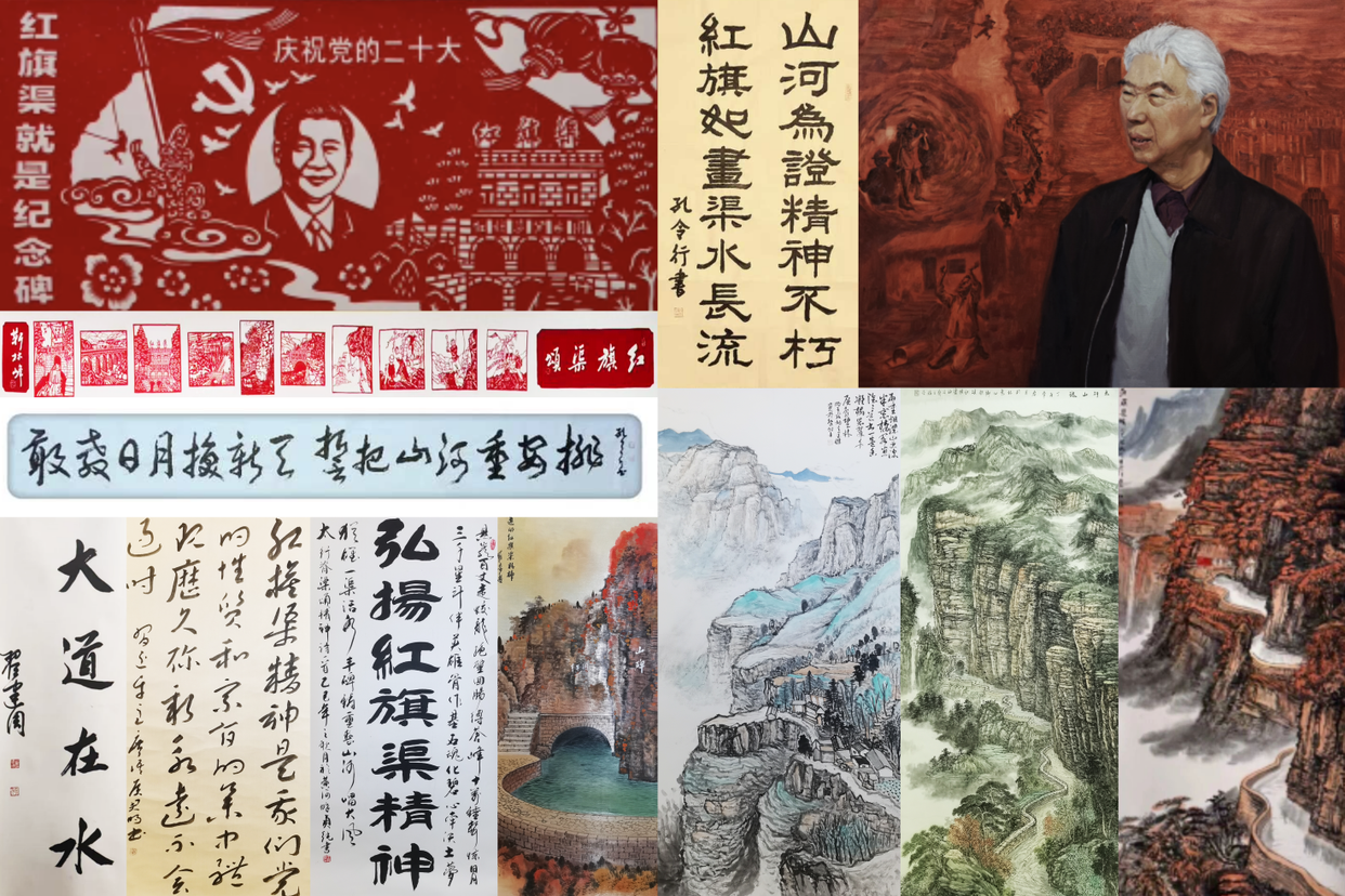 林州市文联在发来的贺信中指出,20世纪60年代,十万林州儿女以一锤一钎一双手,在太行山悬崖峭壁上开凿出“世界第八大奇迹”红旗渠,不仅解决了千百年的缺水之苦,更孕育了光耀千秋的红旗渠精神。红旗渠是新中国艰苦创业的典范,此次书画交流展以艺术之名传承红色基因,参展作品既再现了当年战天斗地的壮阔场景,也勾勒出太行天河的时代新貌,是红旗渠精神在新时代的生动诠释。
