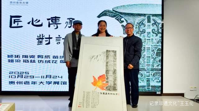 中国记录通讯社(记者:王玉伦)贵州消息:2025年10月29日—— 岁岁重阳,今又重阳,非遗添彩翰墨香。今日上午,“匠心传承·对话古今——贵州老年大学2025年非遗作品专题展”在贵州老年大学艺术馆隆重启幕。此次展览特别汇聚了来自北京与贵州两地的茫父颖拓艺术精品,为观众带来一场穿越古今的文化对话。展览将持续至11月24日,为金秋时节增添一抹浓厚的艺术色彩。