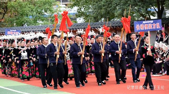 芦笙悠扬,近10多个民族文化方阵、300余名当地群众组成的巡游队伍沿镇主干道缓缓行进,每一步都踏出了民族风采,生动展示着苗族文化的多姿多彩。精美的银饰在阳光下熠熠生辉,五彩百褶裙随风飘动,刺绣上的古老纹样仿佛在诉说着苗族的历史。