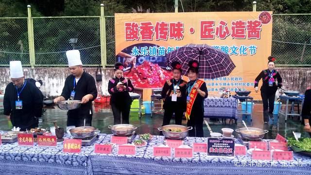 在集镇篮球场与乒乓球场区域,鱼酱酸美食烹饪比赛现场,酸香扑鼻而来。各村烹饪爱好者同台竞技,以鱼酱酸为核心,变出一道道色香味俱全的佳肴。评委们细细品尝,游客们也忍不住驻足围观,那浓郁的香气,是属于永乐苗年独有的舌尖记忆。
