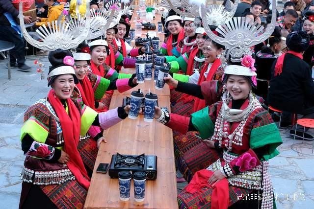 宴席间,主客不分彼此,比邻而坐。苗家姑娘唱着敬酒歌,穿梭敬酒;宾客们举杯互敬,笑语盈盈。米酒的香甜在空气中弥漫,热情的苗族民歌此起彼伏,情感在歌声与杯盏中传递、升温。