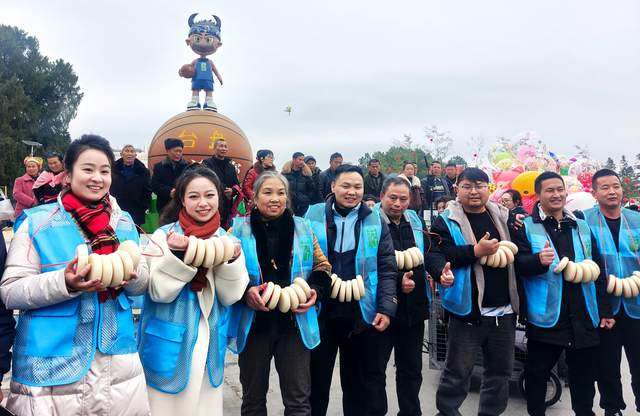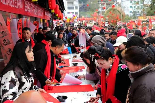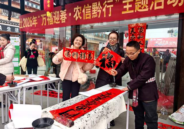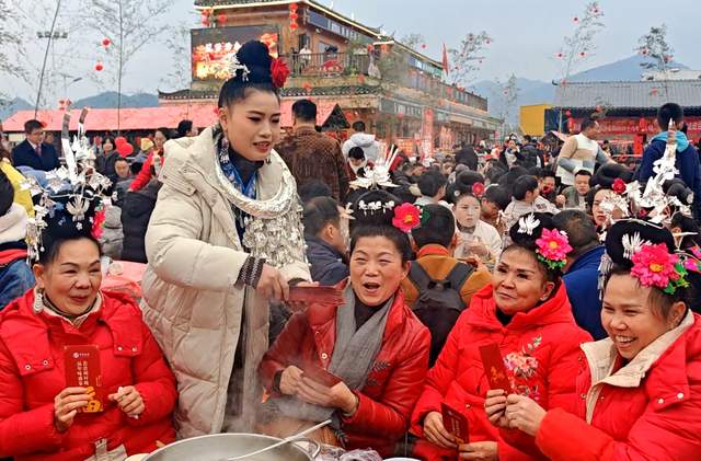 中国记录通讯社(记者 王玉伦 黄庆松 通讯员:余天英)贵州消息:春节临近,2月3日,在贵州省台江县台盘村“村BA”现场的深山集市热闹非凡,年味十足,写春联、打糍粑等活动轮番上演,吸引着众多游客来次感受不一样的年味。