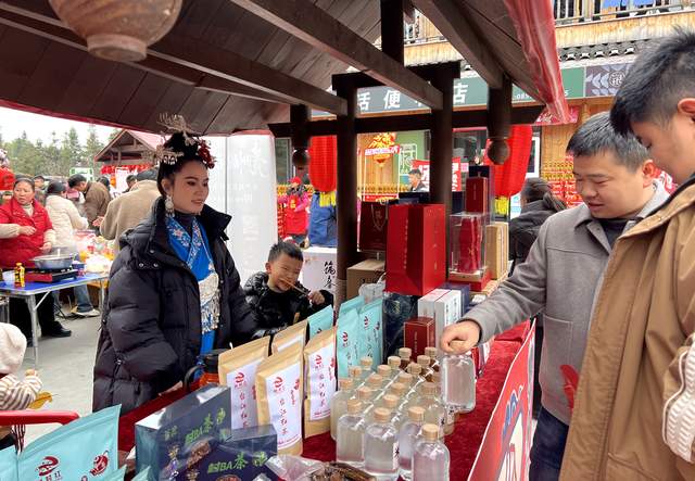 当天在村BA深山非遗集市里,处处张灯结彩,农特产品企业带着自己特色的农产品前来,茶叶,腊肉香肠等年货琳琅满目,浓浓的节日文化氛围扑面而来。