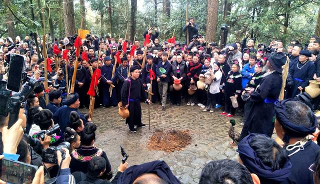 随后,招龙队伍每途经一个山头,便在山间插上白纸钱,同时俯身捧起象征“龙气”的泥土,小心收集,带回寨中。这一路翻山越岭、步步虔诚的跋涉,既是向自然致敬的庄严表达,也是苗族先民与天地对话的文化延续。