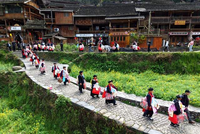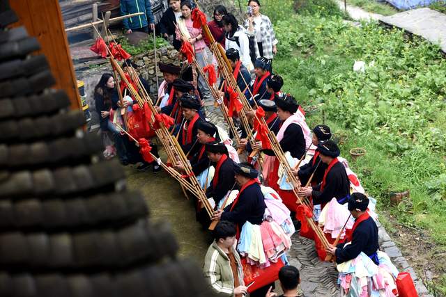 中国记录通讯社(记者:王玉伦 黄庆松 通讯员:段彪)贵州消息:三月春深,苗岭山麓万物复苏。3月23日至26日,贵州雷山县郎德苗寨迎来十三年一度的“鼓藏节”。全寨村民身着盛装,与来自四面八方的游客齐聚一堂,共同参与庄严隆重的招龙仪式,在古朴而热烈的氛围中,共庆这场跨越时空的民族盛典,祈愿新的一年风调雨顺、五谷丰登。