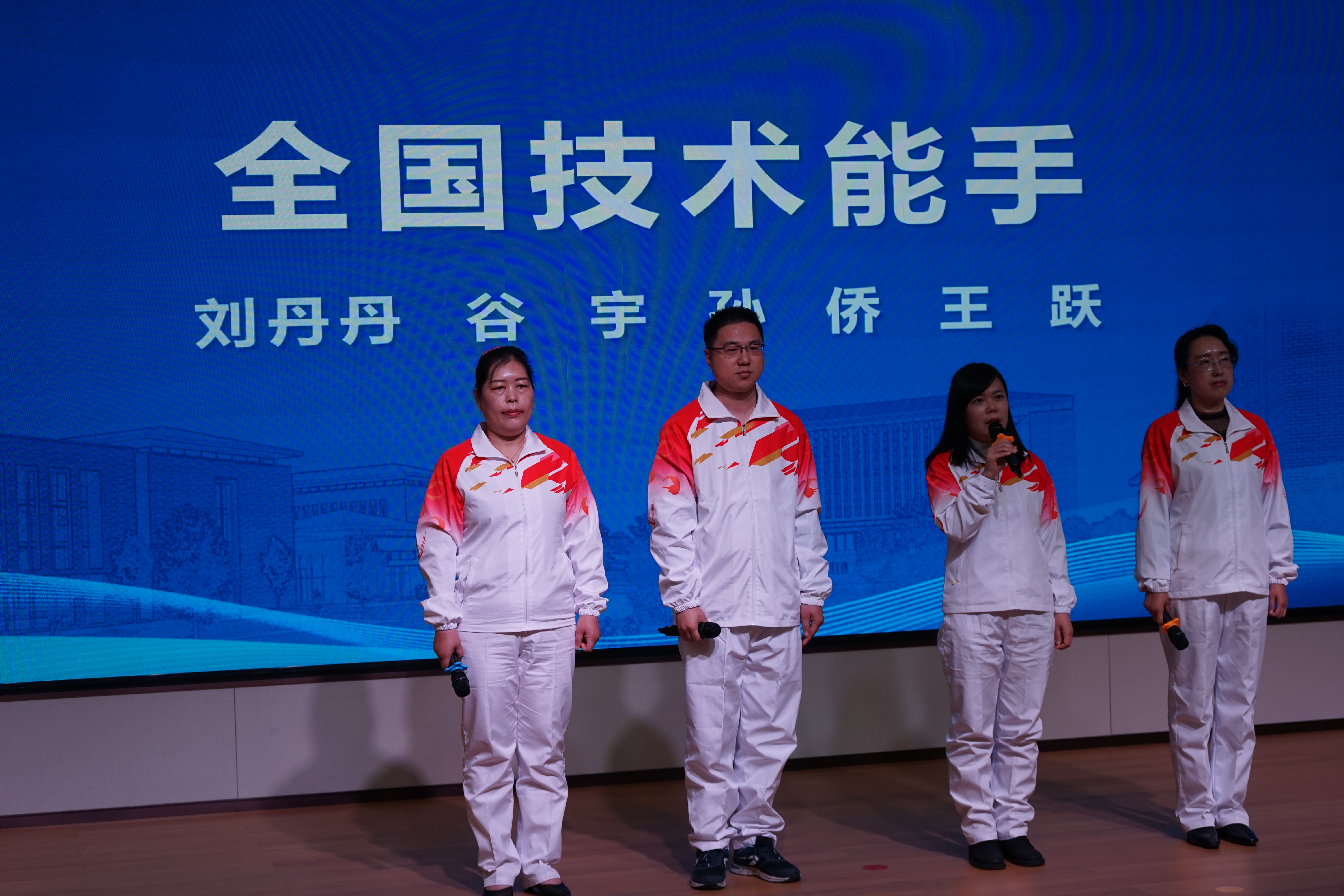 在开幕式上,刘丹丹、谷宇、王跃、孙侨四位全国技术能手代表分享了个人的技能成长故事。