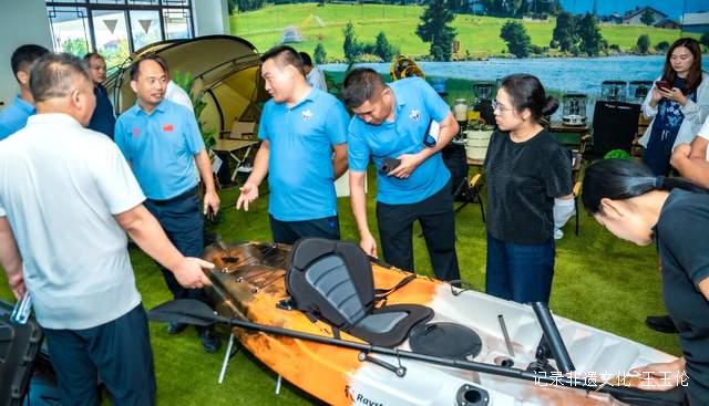 之后,考察团来到了露营之家全球供应链贸易中心那 7000 平米的生活馆。在这里,他们仿佛进入了一个户外露营的奇幻世界,实地考察调研了户外露营产业九大百亿新赛道供应链产品应用场景。这个供应链落地产业可不简单,它以山川、湖泊、森林、溪谷、矿坑营地等露营产业生态场景为核心,精准定位三链合一,即“安全装备供应链”“安全场景供应链”“安全过程服务供应链”。就像一个精心打造的齿轮组,各个环节紧密配合,集中资源与精力进行深度耕耘,构建起了专业、垂直、高效的产业生态体系。