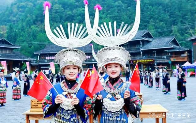 活动现场那场面,简直太震撼了!苗家的姑娘小伙们都穿上了传统盛装,和游客们一起齐声高唱《歌唱祖国》。他们手中挥舞的五星红旗,和银饰碰撞发出的清脆声响相互交织,这一幕把家国同庆的温情传递给了在场的每一个人,让人热血沸腾!