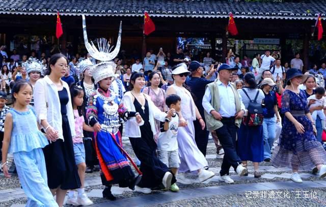 大西门的“遇见仰欧桑”歌舞表演,舞者们用柔美舞姿再现了神话故事,仿佛把大家带入了一个神秘的世界;芦笙场上的原生态歌舞表演,更是让游客们忍不住阵阵喝彩;板凳舞的节奏热烈欢快,充分展现了苗家的活力。还有那“高山流水”苗家最高敬酒礼,游客们亲身参与其中,真切感受到了苗家待客的热情。在“立蛋祈福”活动上,大家纷纷立蛋许愿,体验苗家祈福的趣味,仪式感直接拉满!