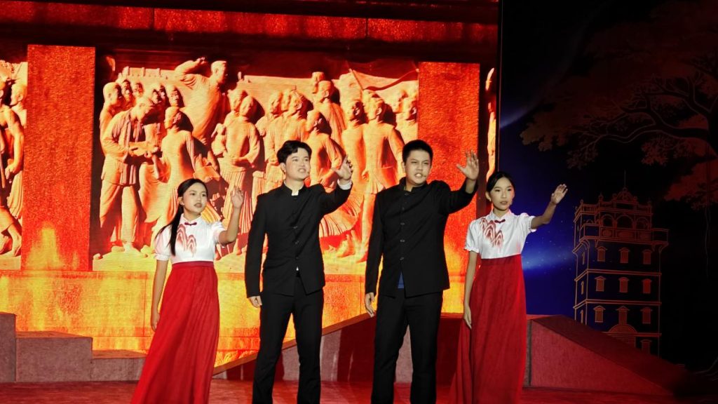侨乡新春,元宵之夜,天上下着细雨,舞台演绎着人间温暖,台下三百余观众撑着雨伞在支持和鼓掌,“诗意侨都,阅读启航”2026元宵朗诵会的冒雨演出,创造了一个演出的奇迹,令所有观众共赴一场视听盛宴,参与了真实的视听观演体验,缔造了一个令人难忘的“雨中浪漫故事”。(江门市侨媒中心:黄柏军、冼爱莲/摄影报道)
