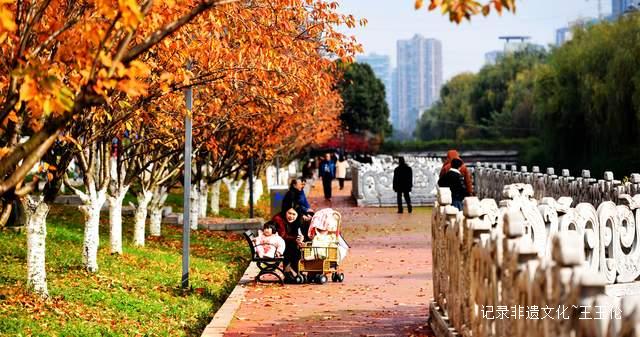 树下是人。三三两两的,多是些悠闲的市民。有年轻的母女,小女孩穿着鲜红的毛衣,在落叶铺成的毡子上蹦跳着,每踩一下,便发出一声清脆的“咔嚓”声响,她于是快活地笑起来,那笑声也像带着颜色,是透明的、亮晶晶的。她的母亲则举着手机,弯着腰,极耐心地追随着孩子的身影;那小小的屏幕里,不知装进了多少帧这秋日限定的、会动的图画。也有白发相偎的老伴,并肩坐在河边的长椅上,并不说什么话,只是静静地望着这流水,这黄叶,这熙熙而过的路人。他们的膝上,或许已落了一两片叶子,他们也并不拂去,任由那金黄点缀着他们素色的衣裳。这光景,是静的,却又不是全然的静;那静里,有一种饱饱满满的、岁月沉淀下来的安详与温和。这比起从前,确是不同了。我恍惚记得,这地方早年似乎并非如此光景,河道或有些芜杂,景致也带着些乡野的、不修边幅的朴拙。而今这一番精心的梳妆,竟真将一片荒疏,点化成了人人可亲、可游、可憩的乐园了。
