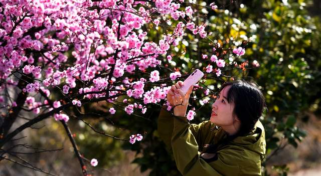 “今天我和家人一起来观赏梅花,感受着春天的气息,”游客韩瑞莹漫步在梅林深处,脸上洋溢着沉醉的笑容,“漫步在这美丽的梅林中,仿佛走进了一幅美丽的画卷,让人心情格外舒畅。” 这不仅是她个人的感触,更是众多踏青者共同的心声。在这里,人们暂时忘却了生活的烦忧,尽情享受着春天的慷慨馈赠。