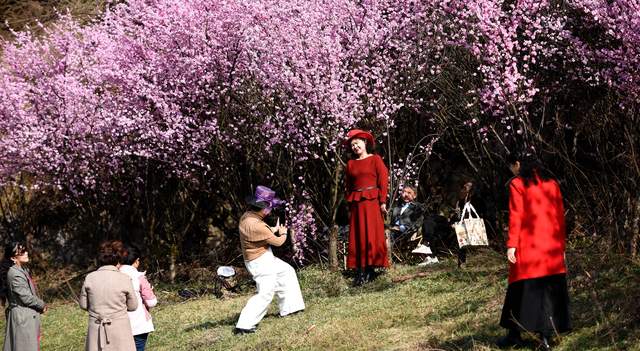蜿蜒的花间小径上,人们三五成群,放慢了平日里匆忙的脚步。他们或驻足于某一株姿态奇崛的老梅前,细细品味枝干的遒劲与花朵的柔美;或举着相机、手机,在花雨中寻找最佳的角度,试图将这份稍纵即逝的春色定格为永恒;孩子们在家长的陪伴下,在梅林间嬉戏穿梭,清脆的笑声与鸟语花香融为一体。