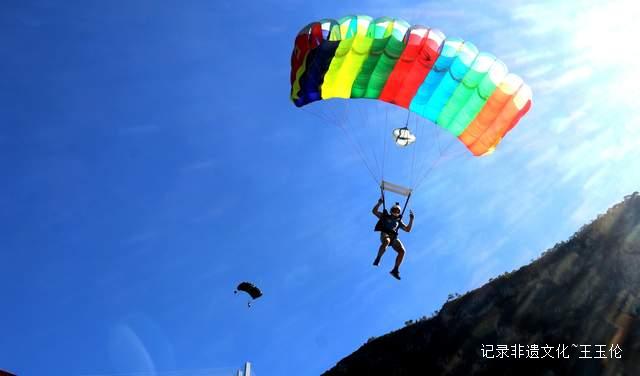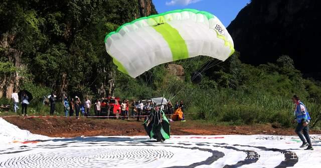 当天14时,比赛正式开始,来自21个国家的31名选手相继纵身跃下高桥,他们在空中精准调整姿态,在峡谷气流中划出优美弧线,短短数秒内完成开伞动作,最终平稳着陆在指定区域,引来观众阵阵欢呼。据介绍,低空跳伞需在极短时间内完成判断、开伞、着陆等一系列操作,对运动员的心理素质与技术精度要求极高,堪称“空中刺绣”。