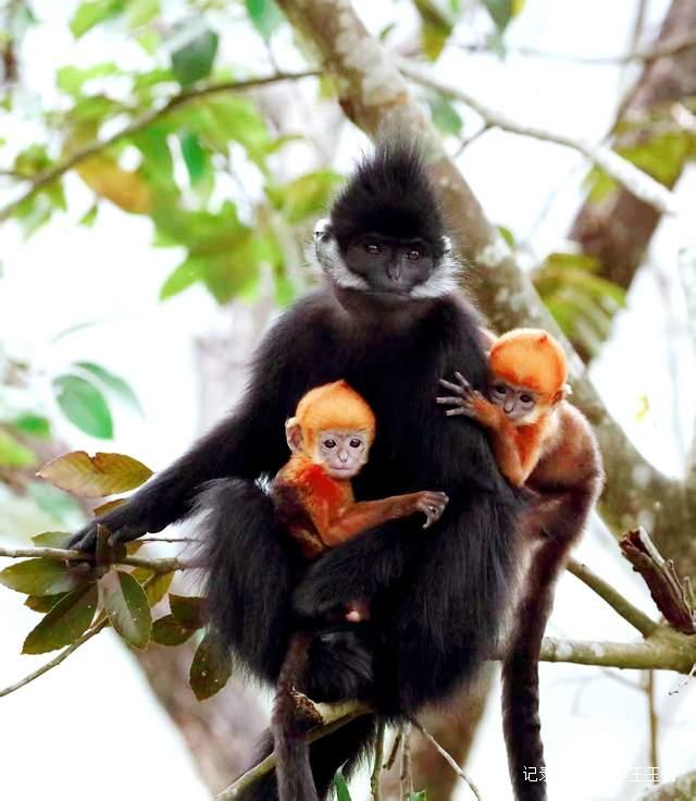 在保护区陡峭的喀斯特岩壁间,5只成年黑叶猴警惕地守护着幼崽。那金黄的小家伙们,时而依偎在母猴怀中汲取温暖,时而试探着迈开步子,每一个动作都透着生命的蓬勃,就像大自然派来的小天使,萌化了所有人的心。