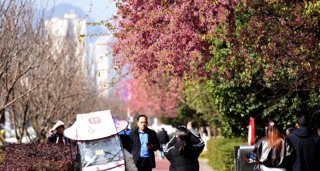 中国记录通讯社(记者:王玉伦 黄庆松)贵州消息:这几日的六盘水市,天空仿佛被清水洗过一般,蓝得纯粹而高远。冬日的阳光,敛去了严酷的棱角,变得慷慨而温柔,毫不吝惜地将一层融融的暖意,铺洒在水城河粼粼的波光上,铺洒在人民广场周遭静谧的步道间。就在这一片澄澈的明亮里,一种属于春日的颜色,却悄然挣脱了时序的桎梏,泼泼洒洒地绽放在枝头——那是水城河畔的冬樱花与梅花,正举办着一场绚烂而静默的“反季”花事。