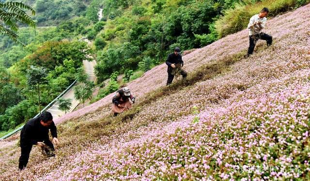 走进水城区新街乡大元村红花蓼种植基地,映入眼帘的是一丛丛茂密的植株,淡红色的小花点缀其中,格外美丽。村民们穿梭在田间,熟练地进行着采收工作。