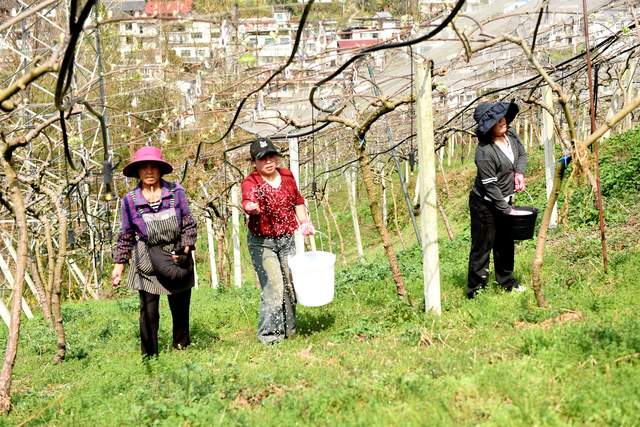 “我们从年前就开始进行锄草、拉枝、剪枝等管护工作,现在做施肥和浇水工作,后面将进行抹芽和授粉等工作。同时,我们通过‘专家包片指导+乡土人才带动’的模式,实现技术培训的全覆盖。未来,我们还打算进一步延伸产业链,发展猕猴桃加工产业,提高产品附加值,让猕猴桃发挥更大的能量,为乡村振兴注入源源不断的动力。”贵州润苇农业技术开发有限公司现场管理人员胡良帮说。