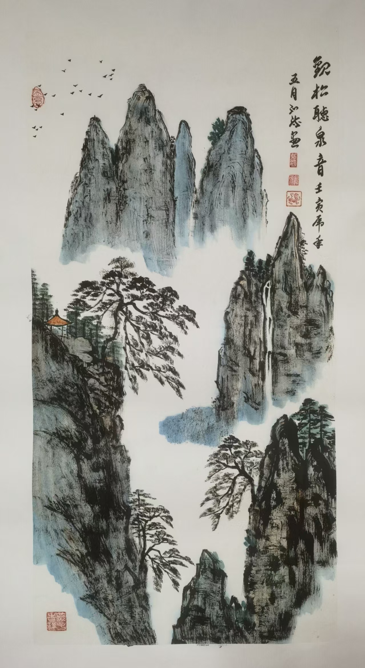 2018年,弘流走进荣宝斋画院习画,日夜埋首临摹古画,青灯下废稿堆成小丘。师从焦墨大师穆家善时,反复练习“千毫皴”焦墨技法,笔锋如刀,让青铜锈色、甲骨裂痕在焦墨层叠中复活。她还向书法家聂军生汲取欧楷与草书的书法筋骨,研习揣摩李远山题画诗的墨色精妙。待传统入骨时,她的画作逐渐形成了独特的灵魂。